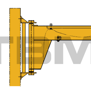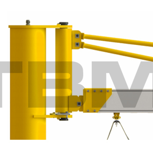 | Ang slewing axis ng 270° jib crane ay matatagpuan sa dalawang lug sa itaas ng column. Ang mga plane support bearings at self-lubricating copper bushing ay inilalagay sa pagitan ng upper at lower lugs at ng slewing axis. Tinitiyak nito ang flexible slewing at pinapababa ang inertial swing ng jib kapag huminto ito. Ang mga limitasyon sa panlabas na slewing angle ay ibinigay upang ayusin ang slewing angle ng jib. |