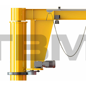 Ang folding arm crane ay nilagyan ng isang conventional electric hoist (ang hoist ay nakabitin sa dulo ng jib) upang matugunan ang mga pangangailangan sa pag-angat ng ilang bahagyang mas malalaking workpiece.